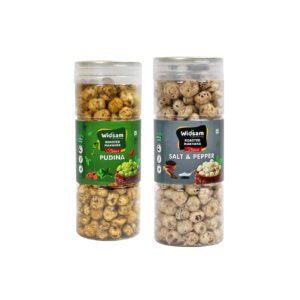 Widsam Roasted Makhana, Pudina & Mix Masala Flavour I 90g Each I Healthy Snack Roasted in Olive Oil | Guilt-Free & Crunchy Munchies | Pack of 2