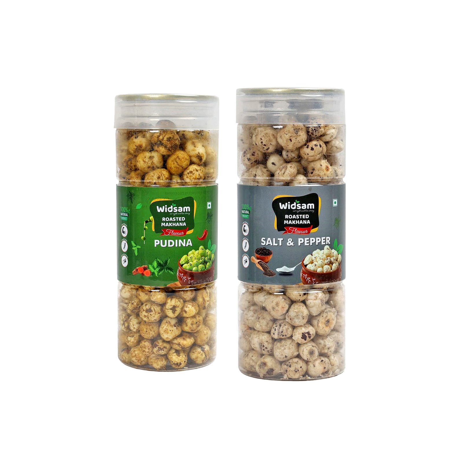 Widsam Roasted Makhana, Pudina & Peri Peri Flavour I 90g Each I Healthy Snack Roasted in Olive Oil | Guilt-Free & Crunchy Munchies | Pack of 2